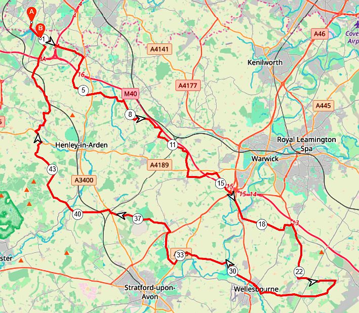 Club rides are organised by a committee member allocating rides to qualified ride captains in sequence and the direction of the ride is specified. On this occasion I was allocated a ride going south east, so I started by looking for a pub roughly in that direction, and I came across the Antelope in Lighthorne, which we had not been to before. It seemed OK so I plotted a route on the plotaroute.com website that came out at about 50 miles. That was pushing the limit of club day rides at that time of the year, so I followed the route myself beforehand to make sure it didn’t have any difficult sections and also that the pub served decent beer and food. Having satisfied myself on those scores I sent off the route to the club for it to be posted on its website.